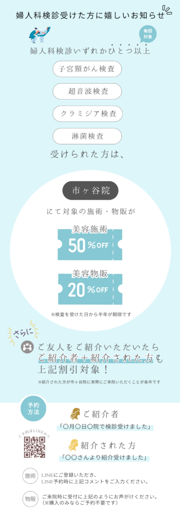 ※美容施術+物販の両方の特典をご希望の方は、同日に美容施術+物販をご購入いただければ可能です。