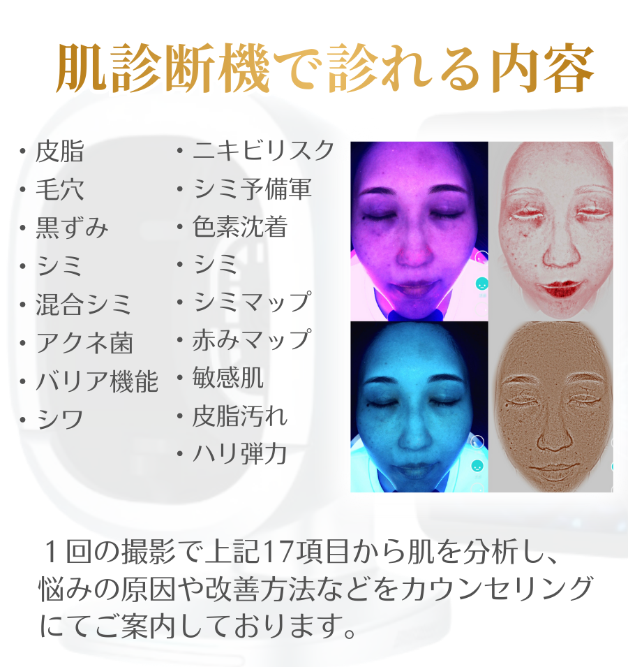 そういった疑問を診断機で分析し、お肌に合った施術をご提示させていただきます。