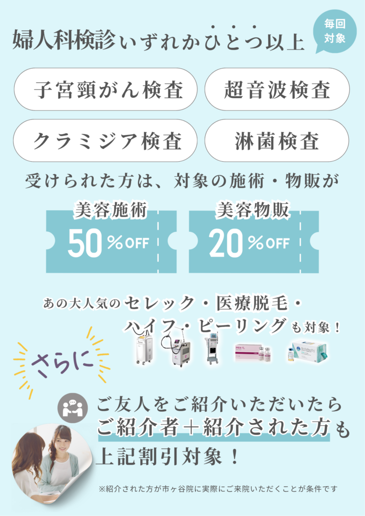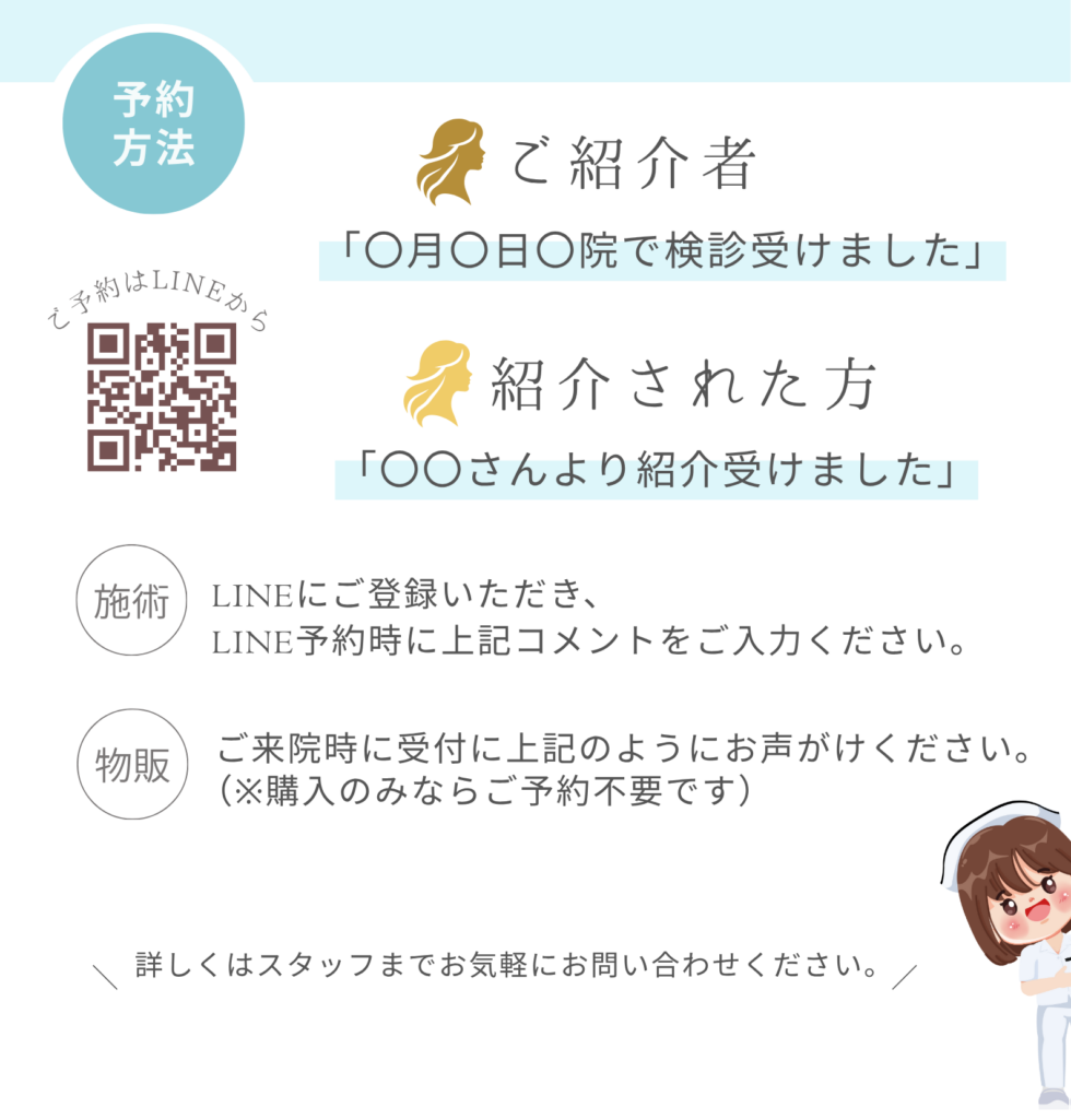 ※美容施術+物販の両方の特典をご希望の方は、同日に美容施術+物販をご購入いただければ可能です。