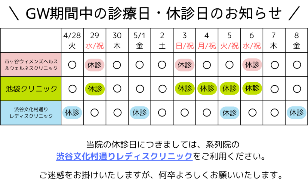 GW期間中の診療日のお知らせ